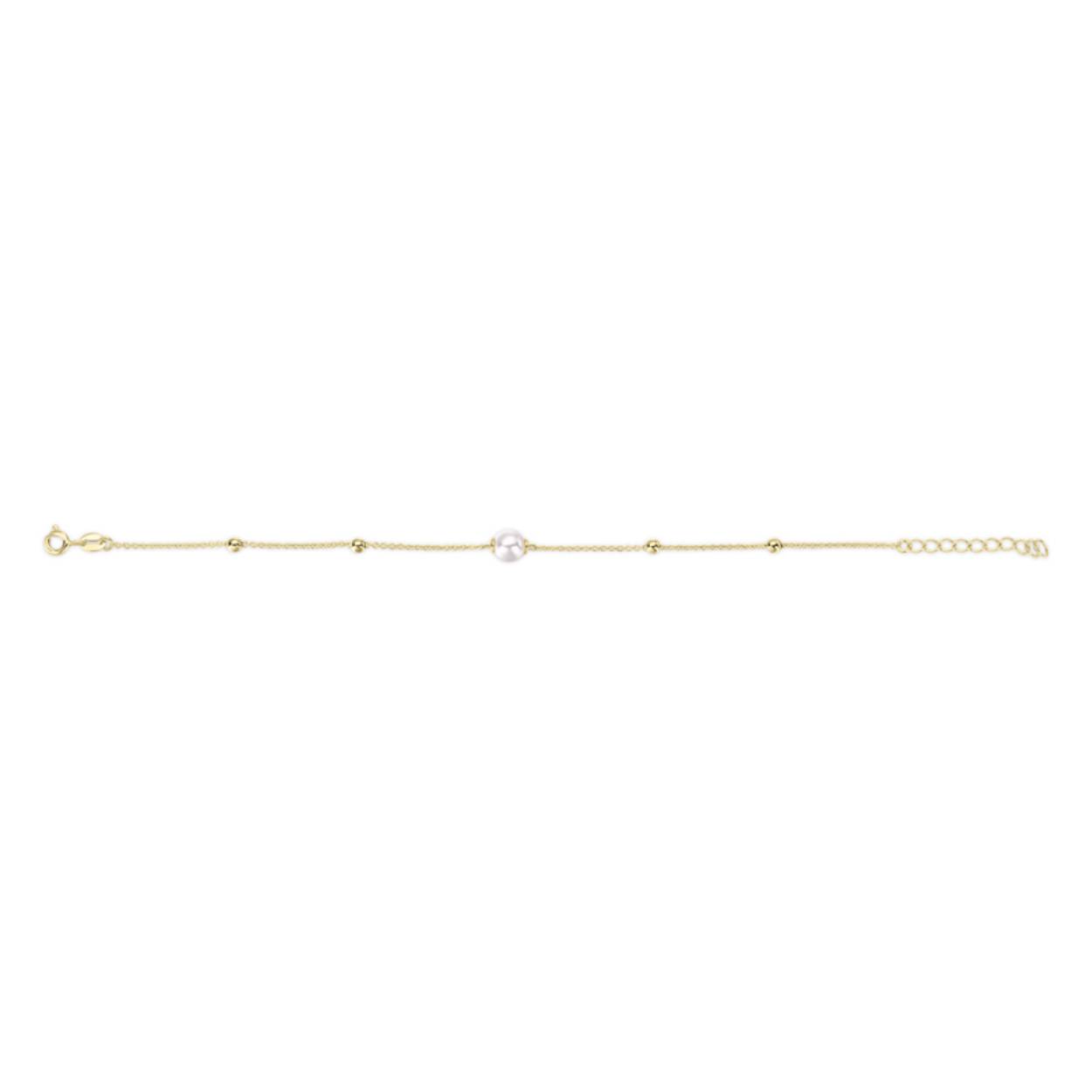 14 karaats gouden armband met bolletjes en parel 17 + 3 cm