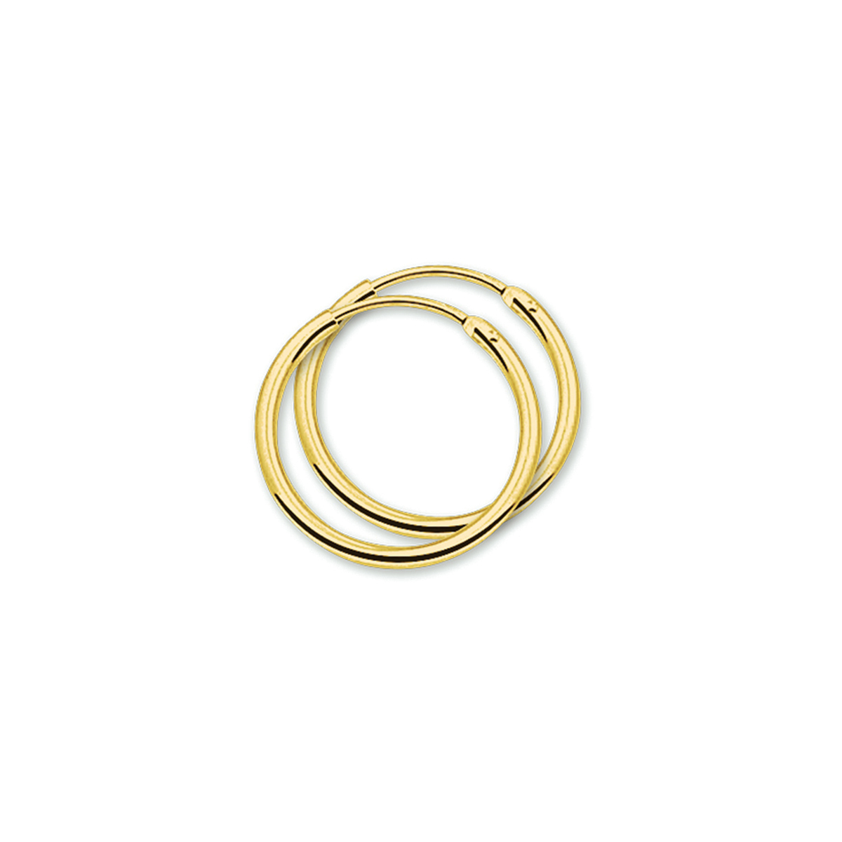 9k Geelgouden oorringen met een ronde buis. De oorringen hebben een dikte van 1.5mm.