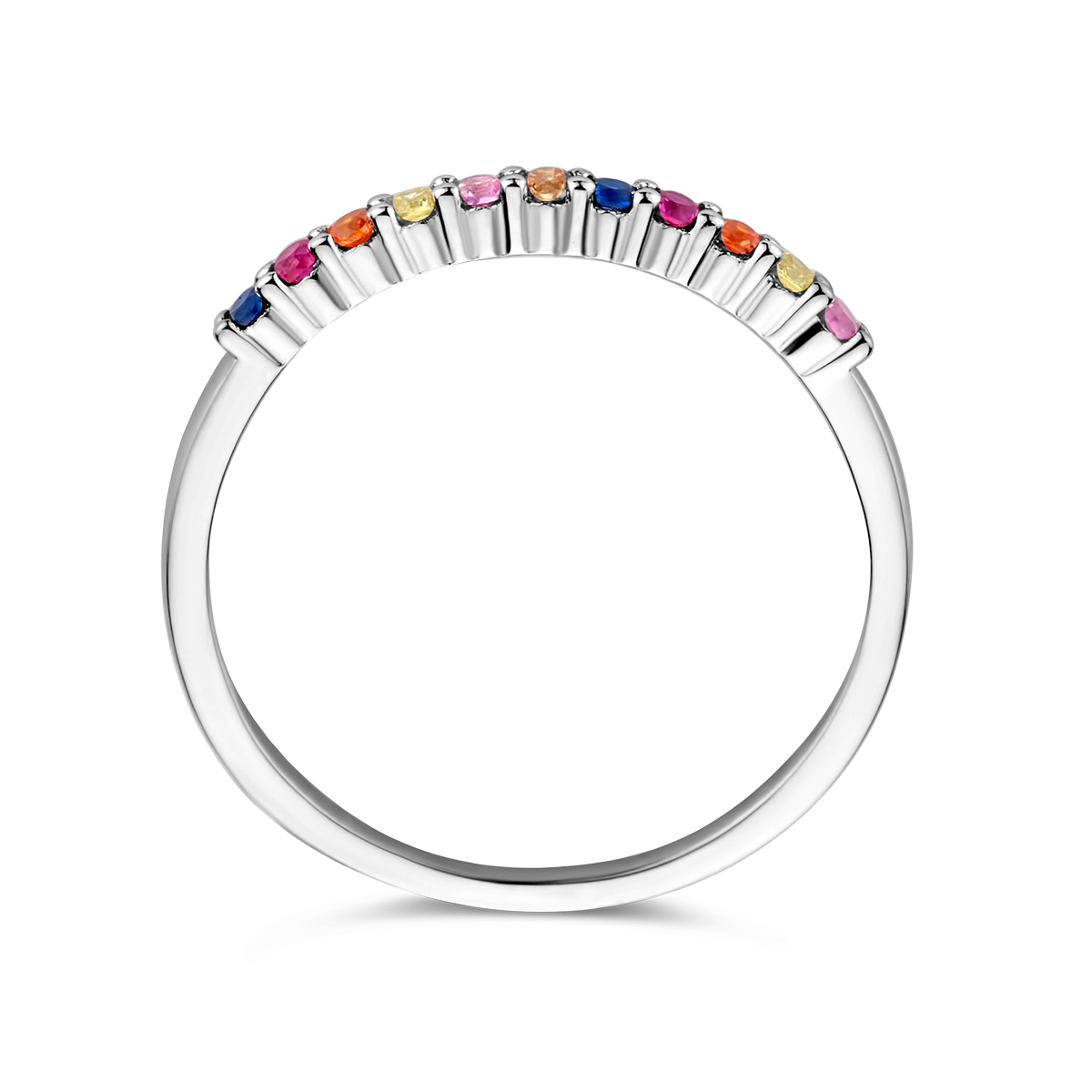 Gerhodineerd 925 zilveren aanschuifring uitgevoerd met diverse kleuren zirkonia. De ring heeft een breedte van 1.5mm.