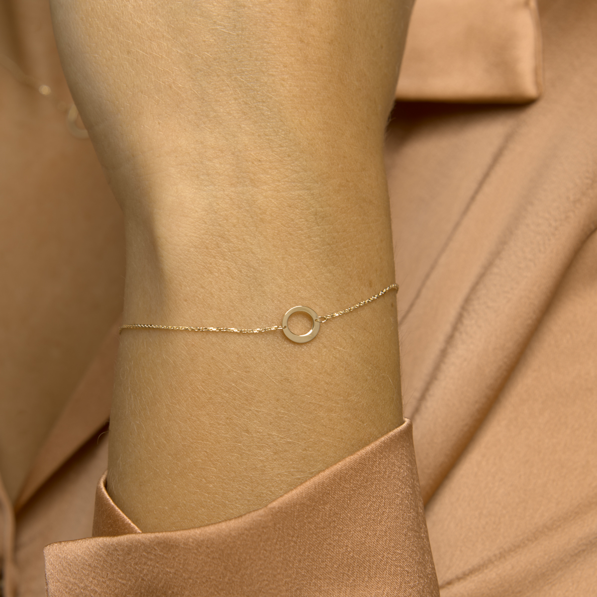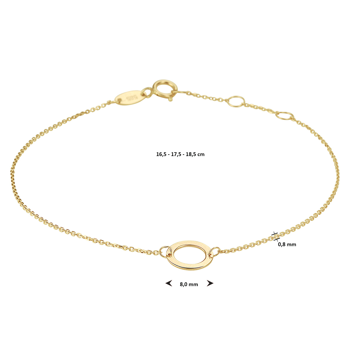14k Geelgouden armband uitgevoerd met een rondje. De armband heeft draaglengtes van 16.5, 17.5 en 18.5cm. Het rondje heeft een diameter van 8mm.