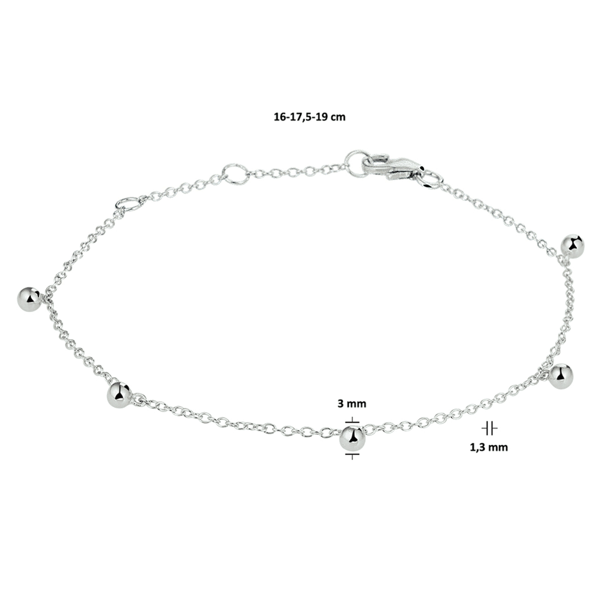 Trendy gerhodineerd 925 zilveren anker armband uitgevoerd met poli afgewerkte bolletjes van 3mm. Door de subtiele uitstraling kan de armband dagelijks gedragen worden en past deze bij veel verschillende outfits. De armband heeft draaglengtes van 16 17.5 en 19cm en is voorzien van een stevige karabijn sluiting. De schakelbreedte is 1.3mm.