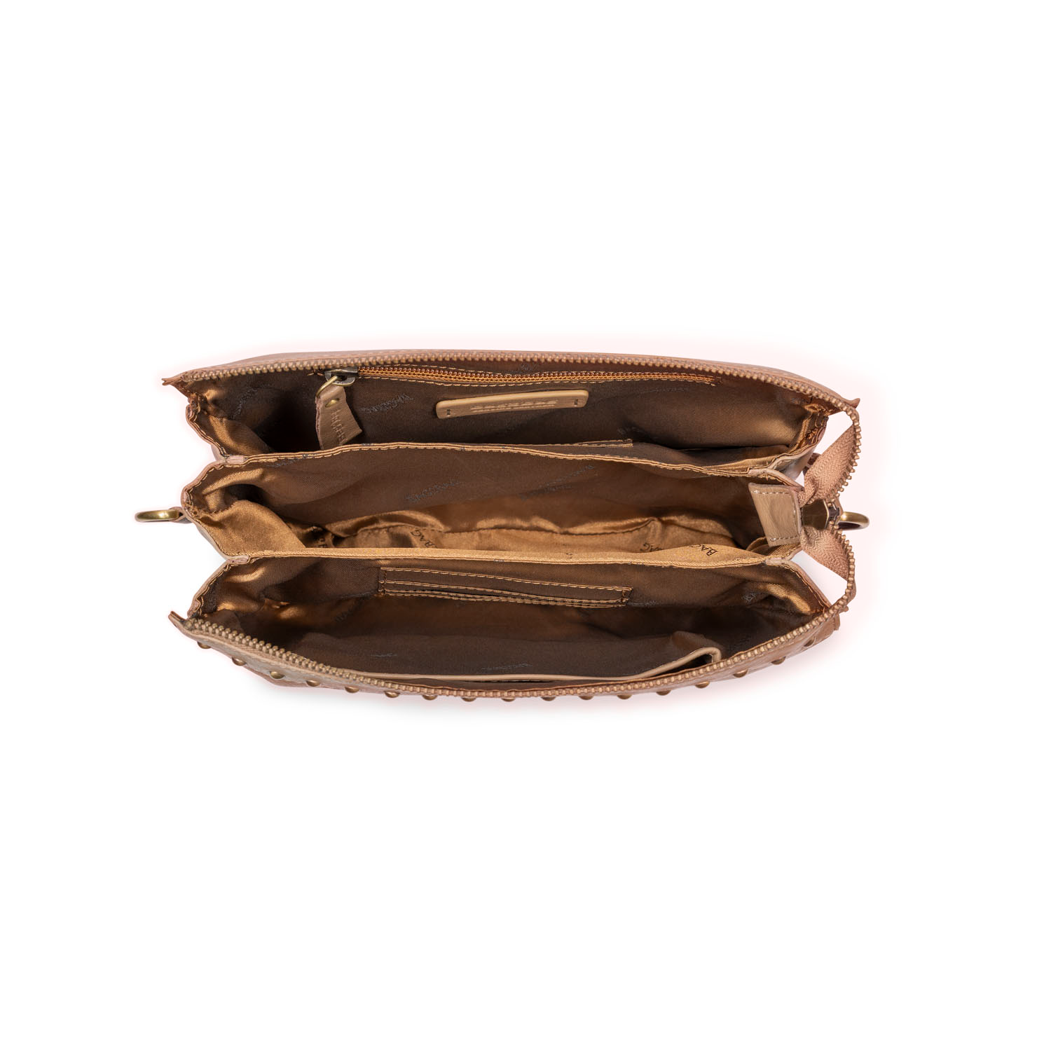 De Yale is een stoere crossbody tas met stijlvolle studs als detail. Het slimme ontwerp met meerdere vakken en ritsen maakt deze tas ideaal om je essentials georganiseerd en veilig mee te nemen.