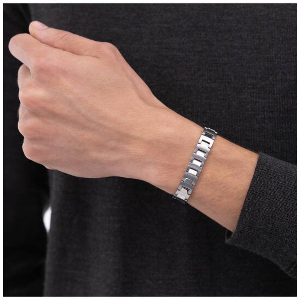 Deze armband van BOSS uit de CANDOR serie is een stijlvol sieraad voor de echte BOSS klant. De stalen goudkleurige schakelarmband toont als een horlogeband en heeft glimmende en matte schakels. Deze strakke armband heeft een magneetsluiting en een lengte van 19cm. Zeker goed te combineren met de bijpassende sieraden van BOSS.
