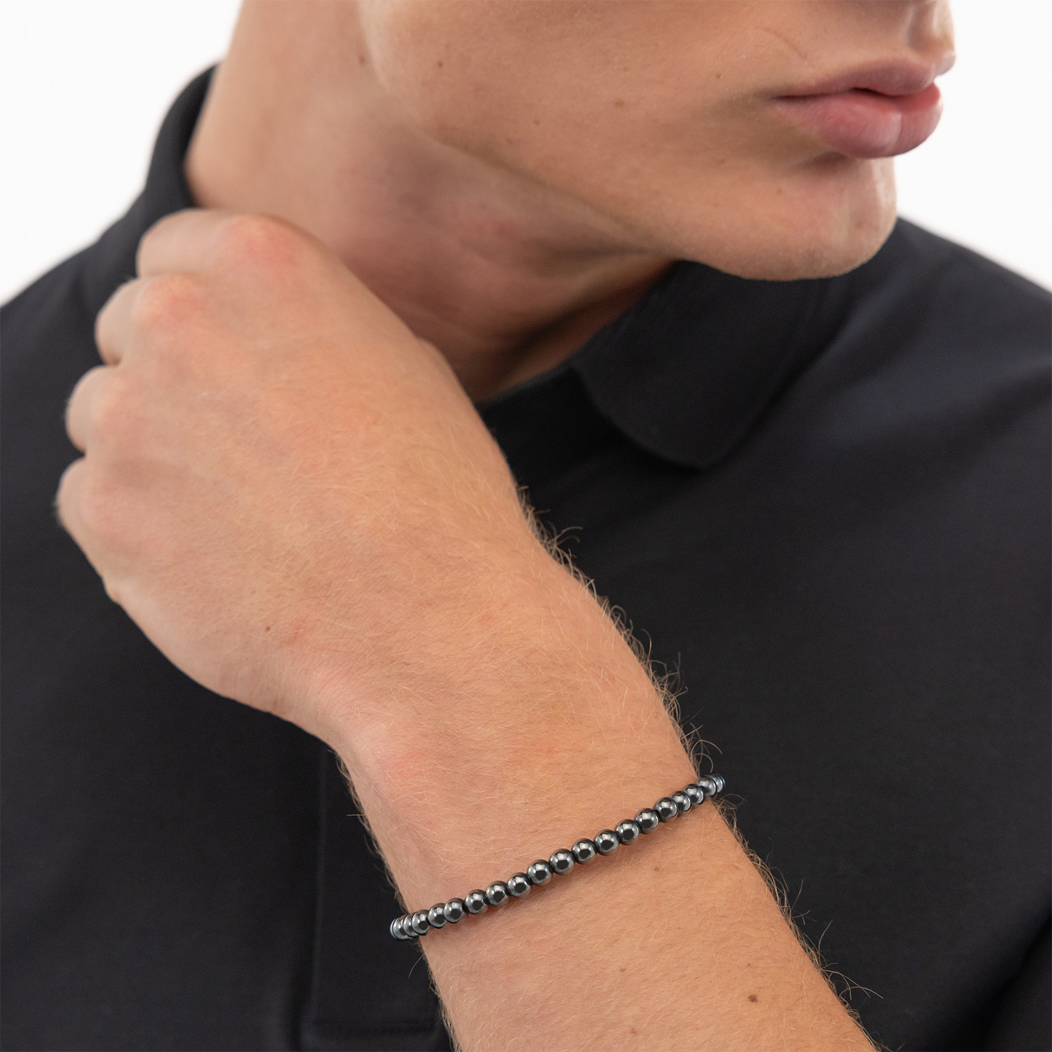 Deze armband van BOSS uit de SPHERE BEADS serie is een opvallend sieraad voor de echte BOSS klant. De armband heeft grijze hematiet kralen van 5mm geregen op staaldraad. Met de stalen magneetsluiting met het Logo is dit een mooi geheel. De lengte is 19cm. Zeker goed te combineren met de bijpassende sieraden van BOSS.