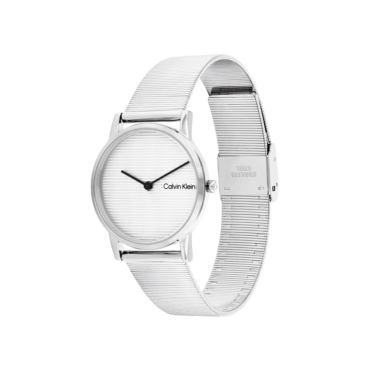Dit Calvin Klein dameshorloge met nr CK2510033 is een minimalistisch ontwerp. De stijlvolle ronde stalen kast heeft een gladde bezel met een zilverkleurige wijzerplaat met alleen wijzers als uursaanduiding. Aan het horloge zit een strakke milanese band met klapluiting. Het horloge heeft een mineraalglas met fijne lijntjes op de wijzerplaat, een doorsnee van 30mm en is 3ATM.