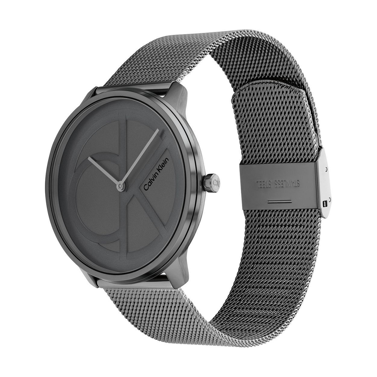 Dit Calvin Klein unisex horloge met nr CK25200030 heeft een strak en minimalistisch ontwerp. De stijlvolle ronde glimmende stalen kast heeft een grijzee wijzerplaat waarop een groot logo en fijne wijzers zichtbaar zijn. Aan de grijze kast zit een grijzee milanese band. Het stijlvolle horloge heeft een mineraalglas, een doorsnee van 40mm en is 3 ATM.