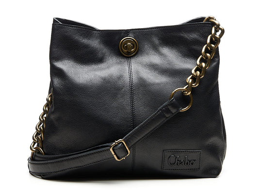 Maak je outfit af met de Chain Fashion Bag: een stijlvolle leren schoudertas met ketting die meteen opvalt. De tas heeft antique brass schakels als schouderband en geeft elke look een stoere, luxe touch.