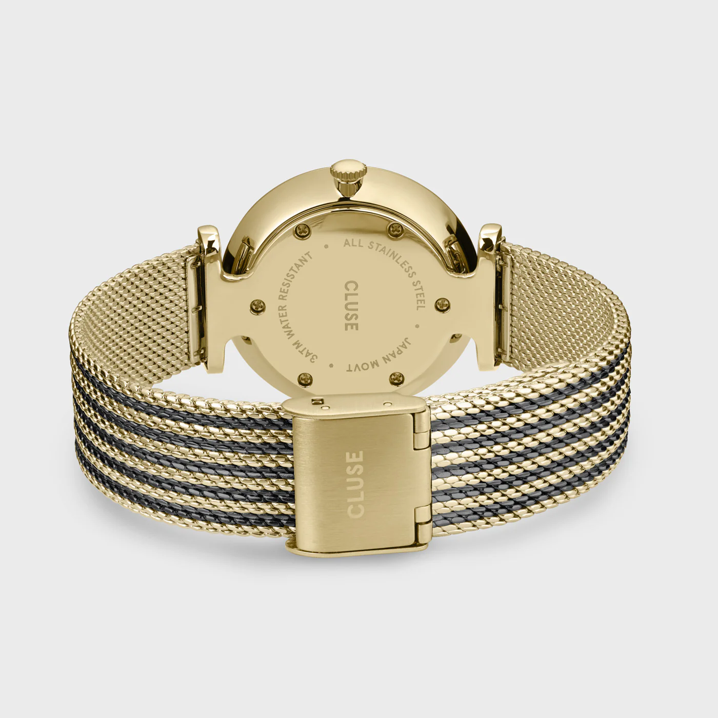Als je op zoek bent naar iets speciaals, is de kans groot dat je de perfecte match vindt in onze CLUSE Triomphe collectie. Dit Triomphe dameshorloge is ontworpen met een gepolijste goudkleurige ronde horlogekast van 33 mm, een zwarte sunray wijzerplaat en een goudkleurige horlogeband van 16 mm met een achterkant in mesh. Of je nu met een vriend gaat lunchen, naar je werk gaat of een avondje uit hebt. Dit Triomphe horloge is de perfecte afwerking voor al jouw looks. Dit horloge is gemaakt om lang mee te gaan dankzij zijn edelstalen horlogekast en horlogeband.