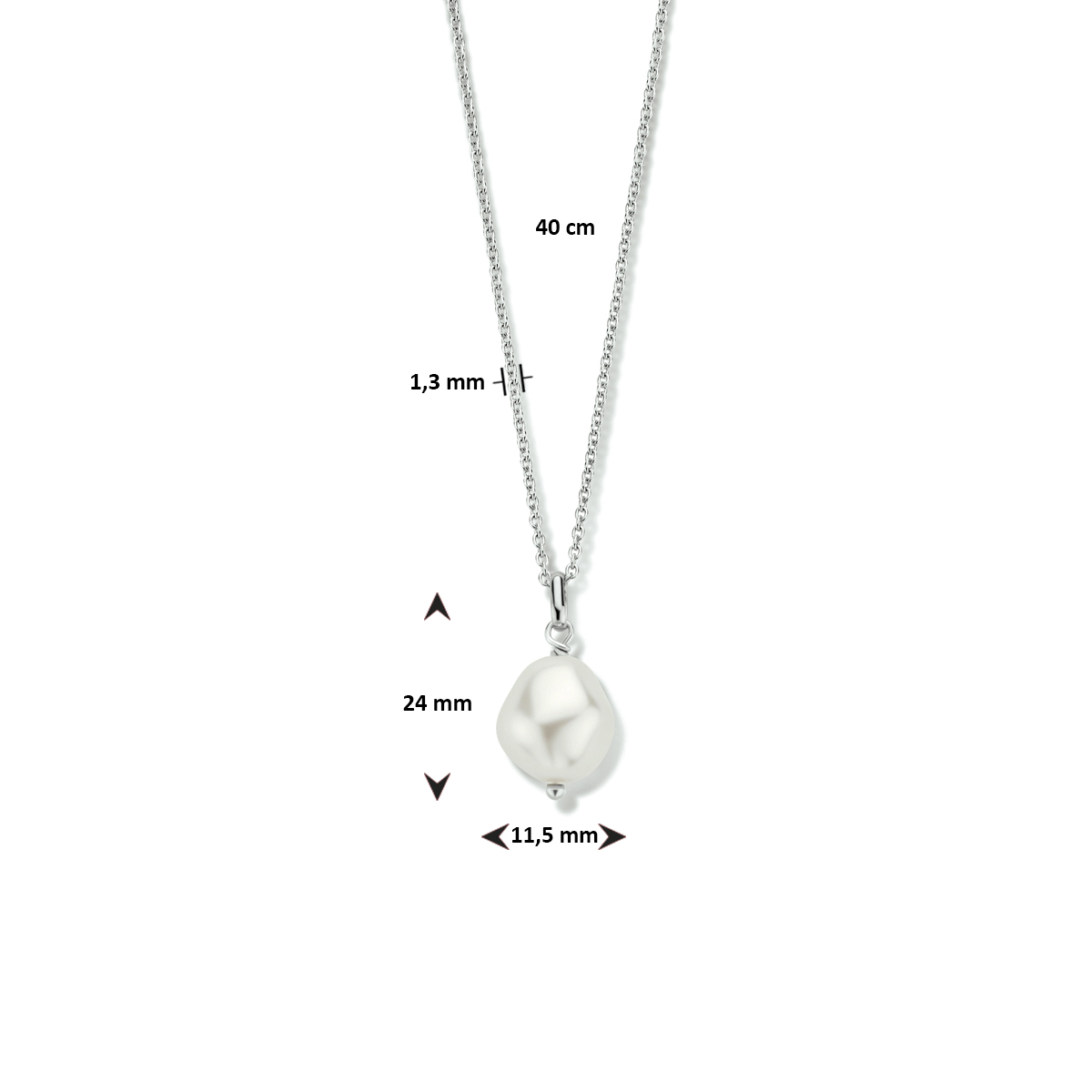 Gerhodineerd 925 zilveren anker collier uitgevoerd met een synthetische parel en een karabijn sluiting. Het collier heeft een draaglengte van 40cm. (kort)  De schakelbreedte is 1.3mm.