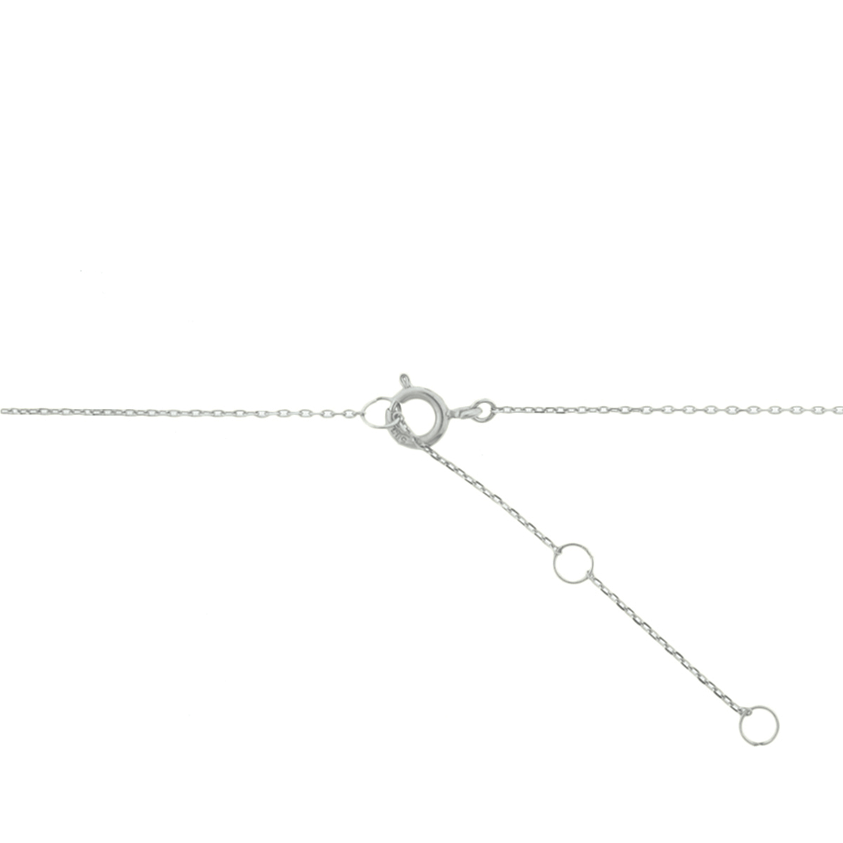 Witgouden collier met zirkonia. De lengte bedraagt 40cm met 3 extensie-ogen. De schakelbreedte is 0.8mm.