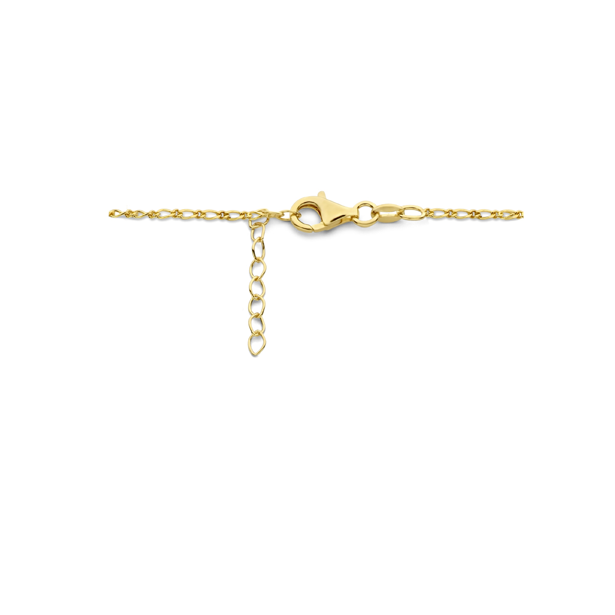 Geelgoud op 925 zilveren collier uitgevoerd met een graveerhanger (20 x 11.3) en een karabijn sluiting. Het collier heeft een draaglengte van 42cm met een extensie van 3cm. Geen garantie op de plating