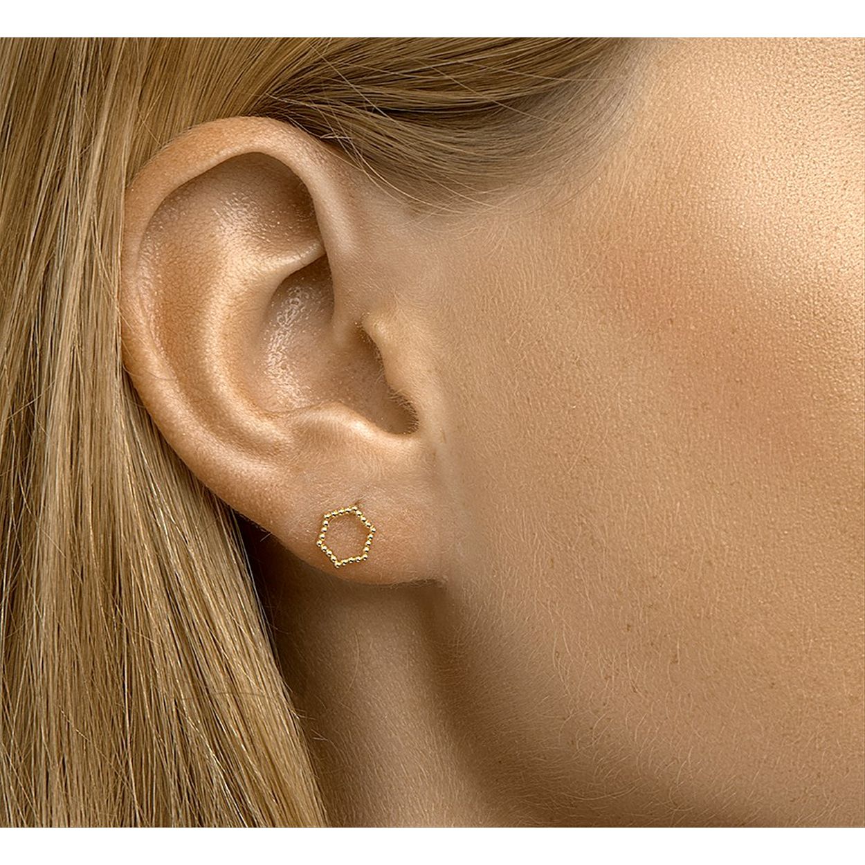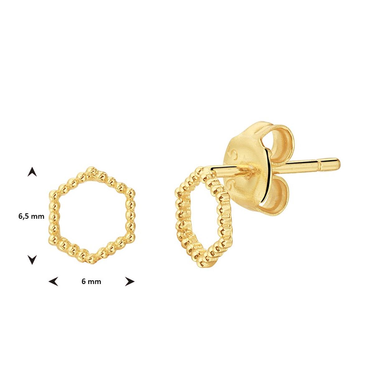 Geelgoud op 925 zilveren oorknoppen uitgevoerd in de vorm van een zeshoek. De oorknoppen hebben een afmeting van 6.5x6mm.
