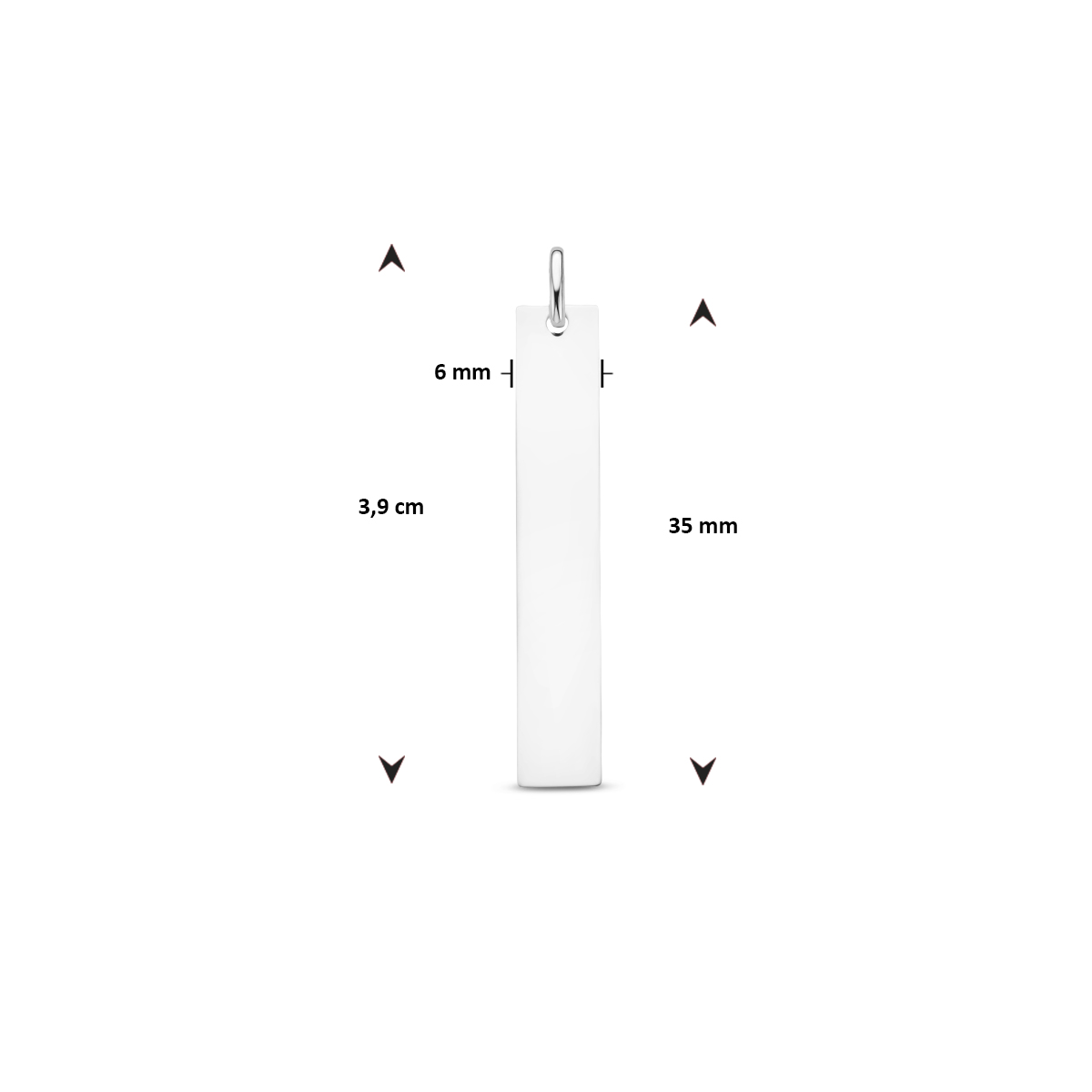 Gerhodineerd 925 zilveren hanger met een totale hoogte van 3.9cm. De rechthoek heeft een afmeting van 35x6mm.