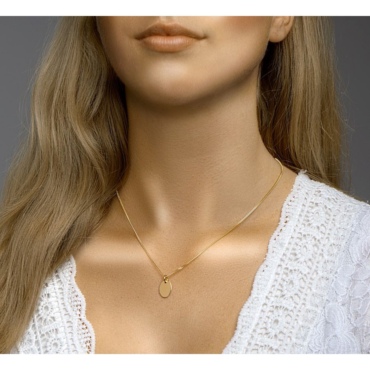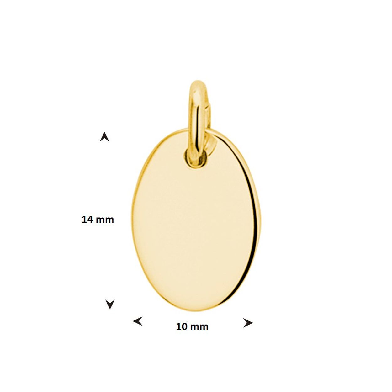Geelgoud op 925 zilveren ovale graveerhanger. De hanger heeft een afmeting van 14x10mm.