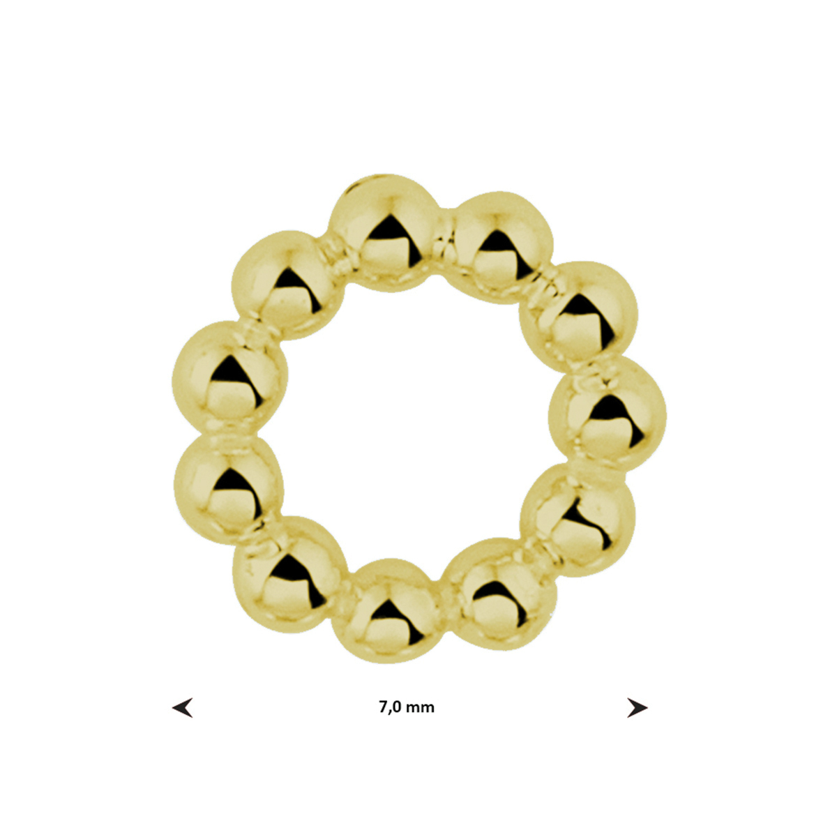 Geelgoud op 925 zilveren hanger uitgevoerd met bolletjes. De hanger heeft een diameter van 7mm. Geen garantie op plating.