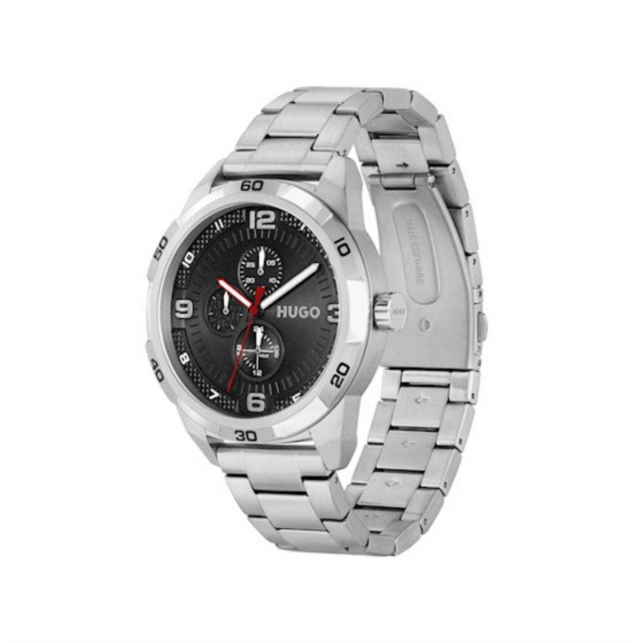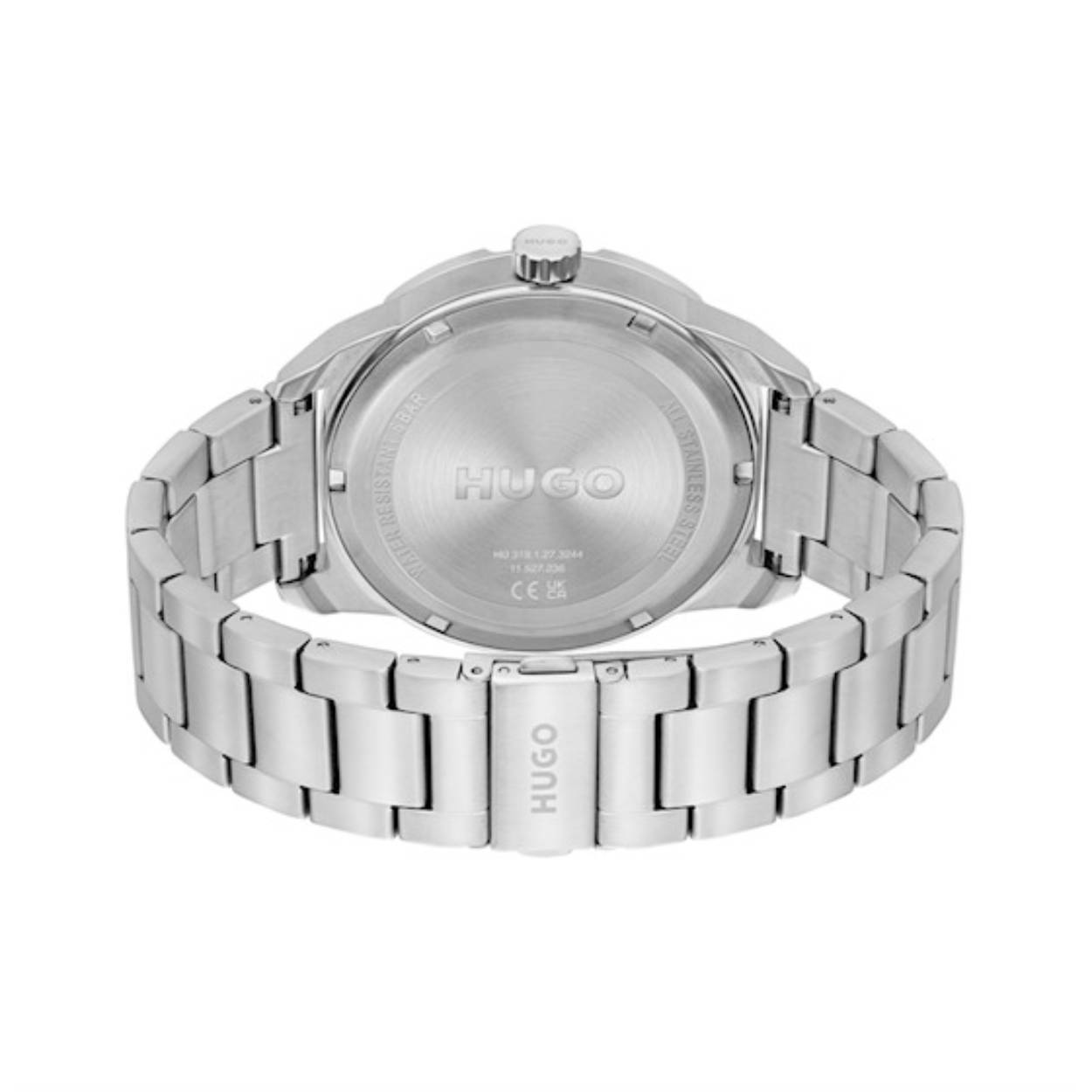 HUGO horloge met een edelstalen zilverkleurige schakelband.