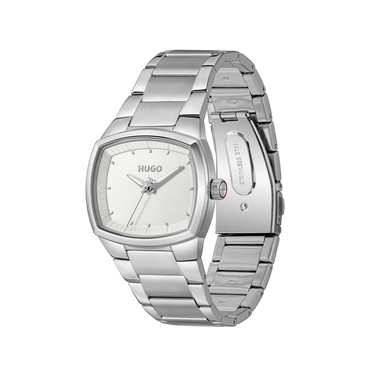 Dit Hugo herenhorloge straalt klasse en minimalisme uit. De rechthoekige stalen kast zorgt voor een elegante en tijdloze uitstraling, perfect passend bij zowel formele als casual outfits. Het model maakt dit horloge tot een veelzijdig accessoire voor elke gelegenheid. De stalen schakelband geeft het horloge een luxe en comfortabele pasvorm. Het herenhorloge heeft een zilverkleurige geschuurde wijzerplaat, een mineraalglas, een doorsnee van 40mm en is 3ATM.