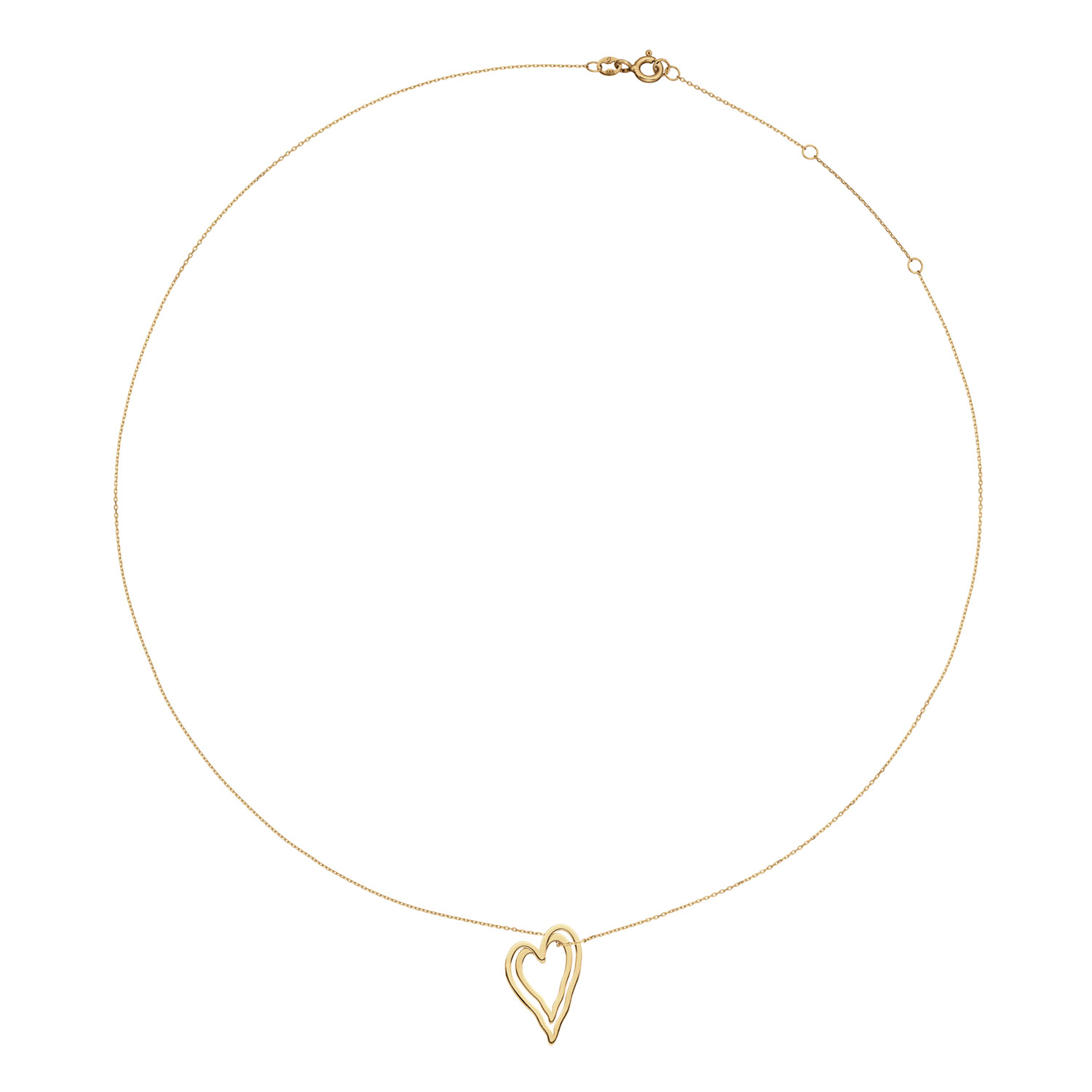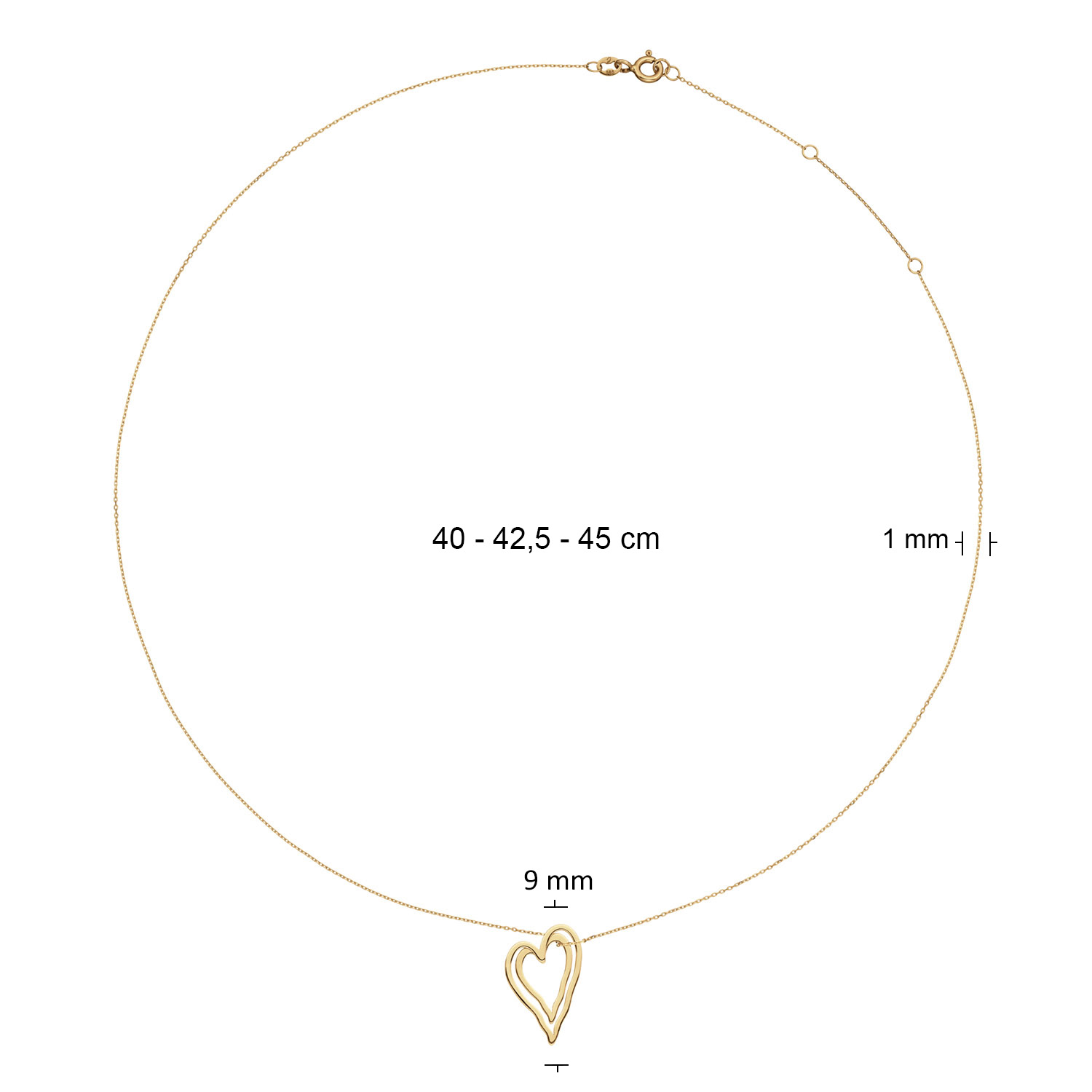 Dit is een collier van het merk Jackie. Het collier is gemaakt van 14 karaat goud. Er zit een hanger van een hart aan het collier. De lengte is verstelbaar in de maten 40-42,5-45 cm.