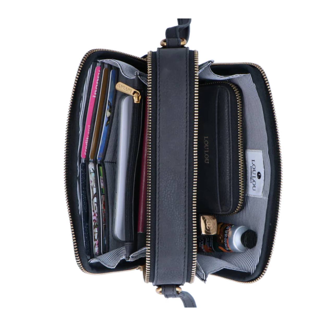 De 23pouch, een multifunctionele en ontzettend complete RFID-crossbody. De tas heeft twee ruime compartimenten die sluiten met een metalen rits. In het voorste compartiment zit een complete portemonnee indeling. Inclusief 12 vakjes voor creditcards, steekvakken voor briefgeld of bonnen, twee vakjes voor fotootjes en een perfect ritsvak voor muntgeld. Ook steek je met gemak je smartphone in dit compartiment. Het tasje heeft een ruim compartiment aan de achterkant waar met gemak een zonnebril (formaat Rayban incl hoes) in kan, naast je andere essentials. Doordat de ritsen van deze fijne pouch volledig opengaan kun je alle ruimte optimaal benutten. De crossbody heeft een verstelbaar schouderhengsel met een drop lengte van 73 cm, dus geschikt voor alle vrouwen. Aan de achterkant een extra ritsvak, het tasje wordt geleverd met uitneembaar spiegeltje en de LouLou bedeltjes. Wie graag georganiseerd de deur uit gaat, met toch zoveel mogelijk bij de hand heeft hier een perfecte match.