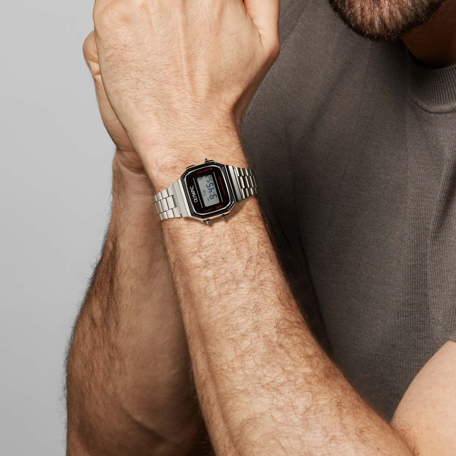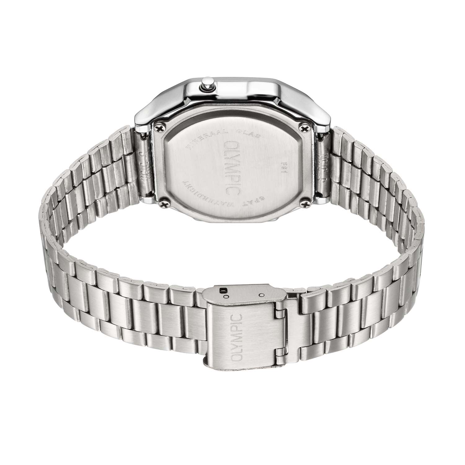 Dit unieke Olympic horloge is een digitaal horloge met een sportieve uitstraling. Het horloge heeft een rechthoekige metalen kast met een zwart digitaal venster met rode en witte accenten. Het horloge heeft meerdere functies zoals, tijd, datum, stopwatch, alarm en verlichting. Aan de kast zit een zilverkleurige stalen matte schakelband met kliksluiting. Het horloge heeft een mineraalglas, een afmeting van 38,6x 36,3mm en is 3ATM.