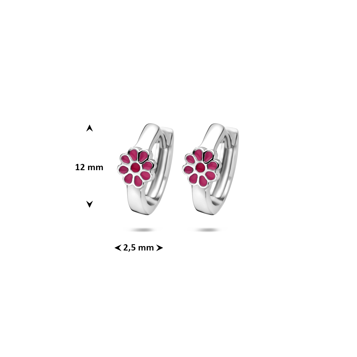 Gerhodineerd 925 zilveren oorringen uitgevoerd met een bloem. De oorringen hebben een afmeting van 12x2.5mm.