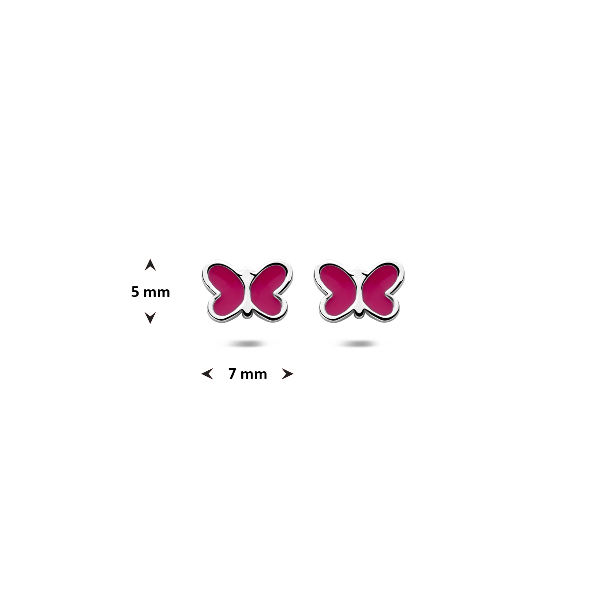 Gerhodineerd 925 zilveren oorknoppen uitgevoerd in de vorm van een vlinder. De oorknoppen hebben een afmeting van 5x7mm.