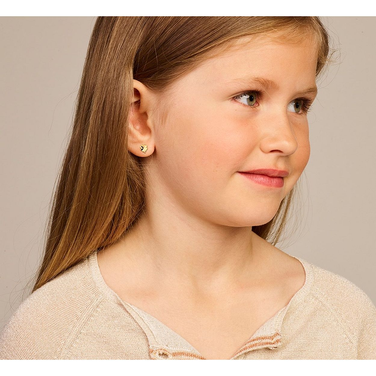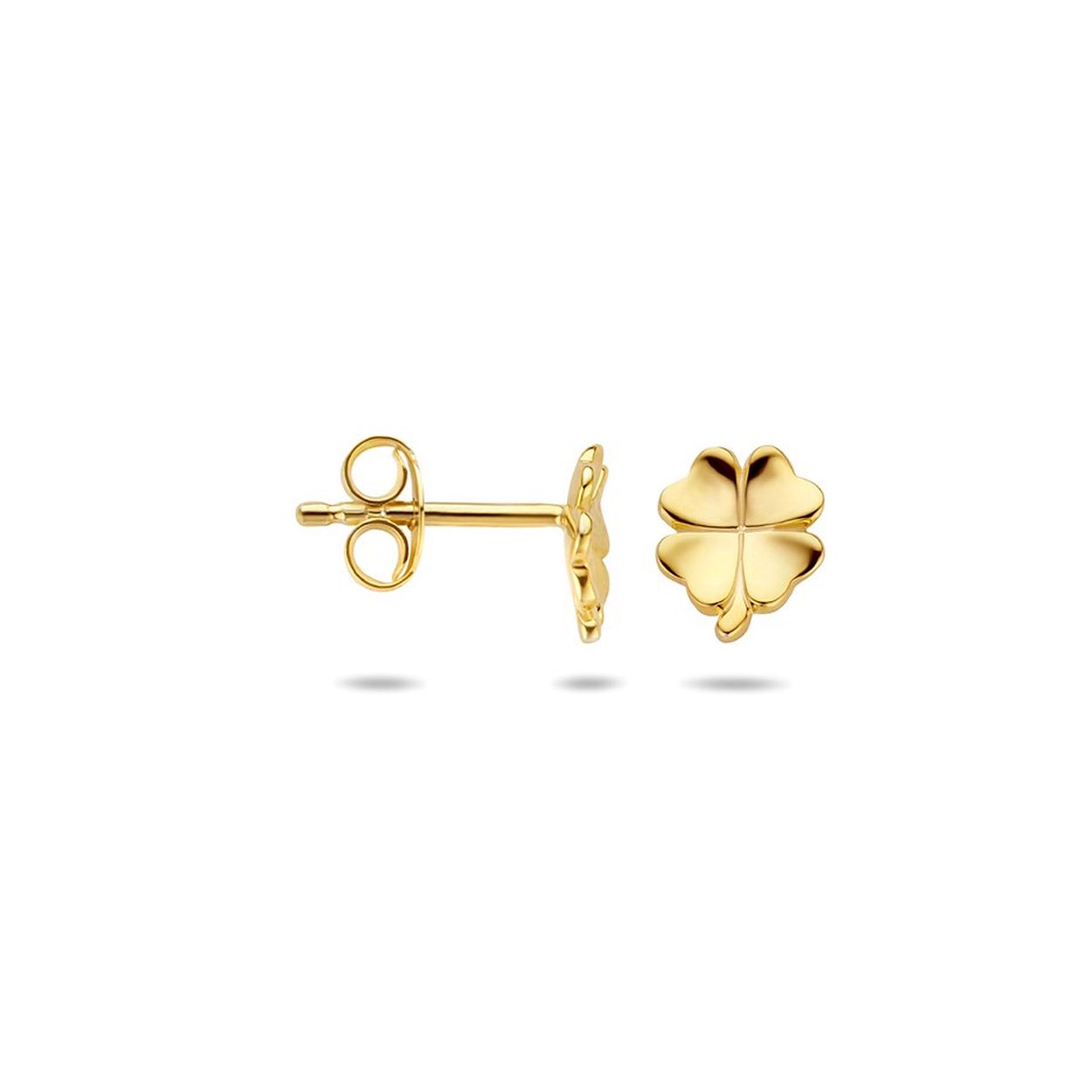 Geelgoud op 925 zilveren oorknoppen uitgevoerd in de vorm van een klavertje. De oorknoppen hebben een afmeting van 7.5x6.5mm. geen garantie op plating