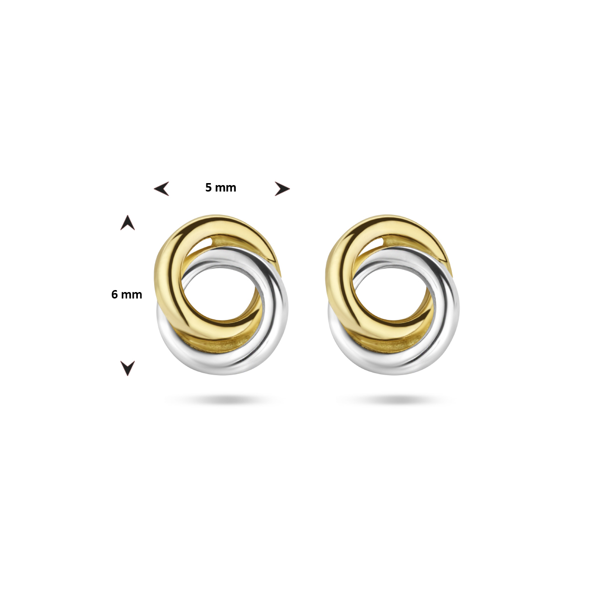 14k Bicolor geel- en witgouden gestifte oorknoppen. De oorknoppen en hebben een afmeting van 6x5mm.