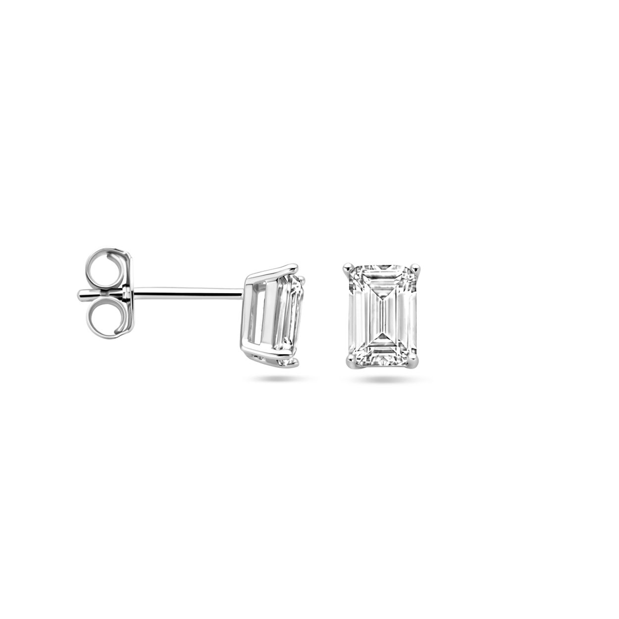 Gerhodineerd 925 zilveren oorknoppen uitgevoerd met zirkonia. De oorknoppen hebben een afmeting van 6x4,5mm