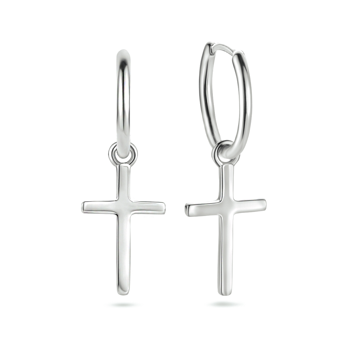 Zilveren oorringen uitgevoerd met een kruis van 16x10.2mm. De oorringen hebben een totaalhoogte van 31mm.