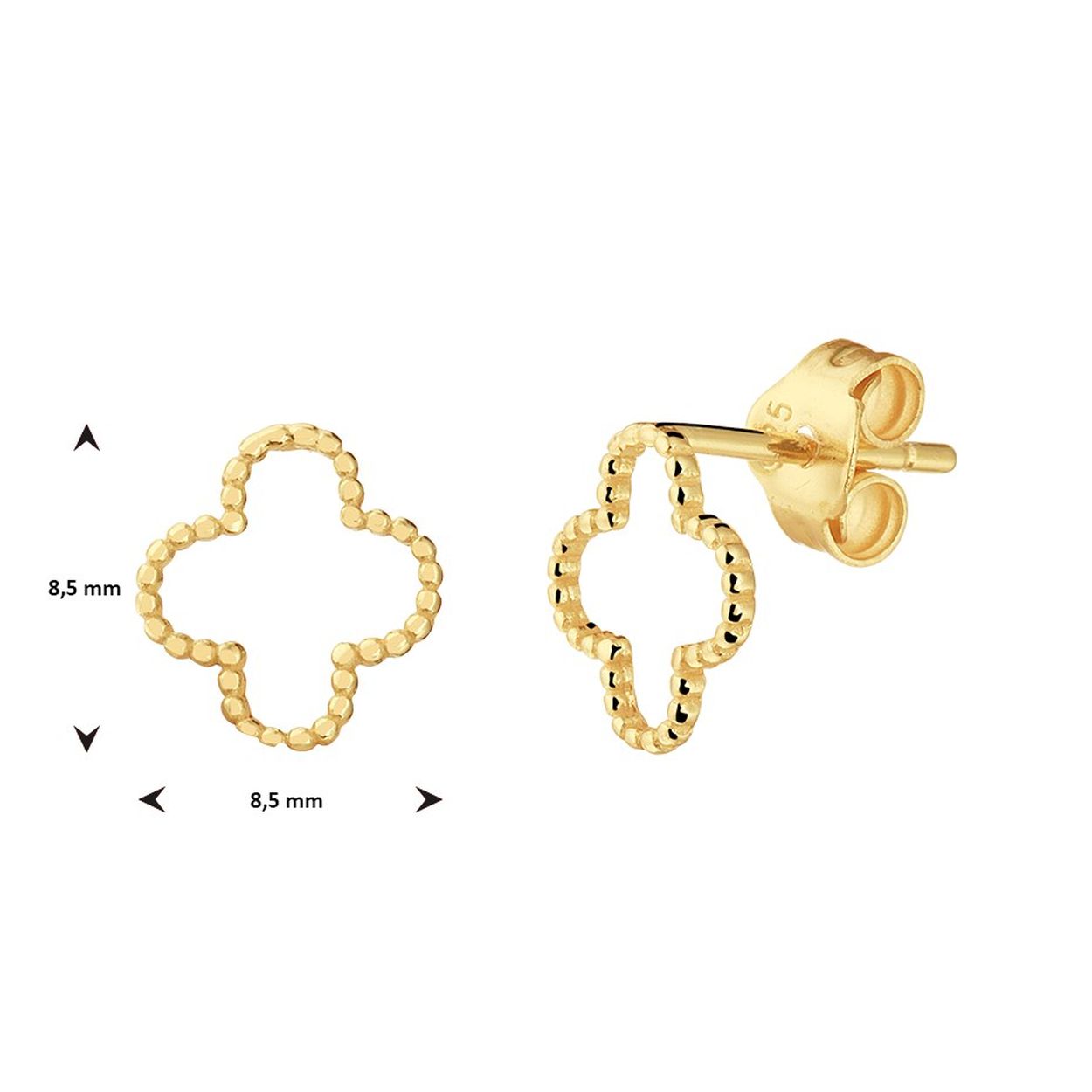 Geelgoud op 925 zilveren oorknoppen uitgevoerd in de vorm van een bloem. De oorknoppen hebben een afmeting van 8.5x8.5mm. geen garantie op plating
