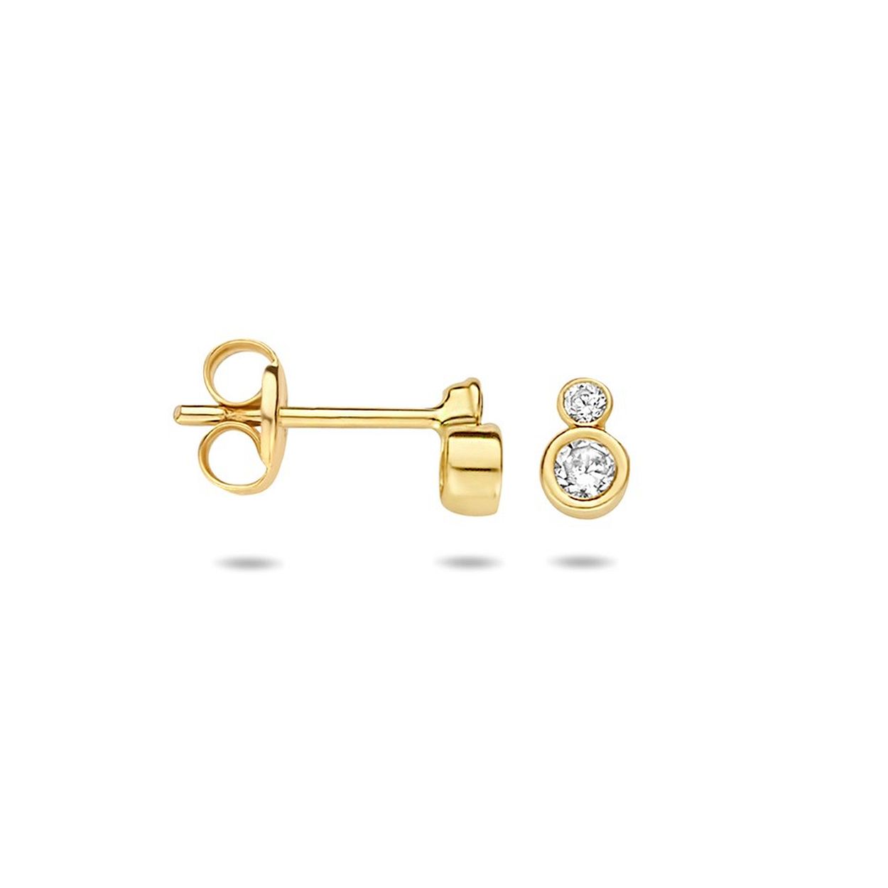 14k Geelgouden oorknoppen uitgevoerd met helder zirkonia. De oorknoppen hebben een afmeting van 4x2.5mm.