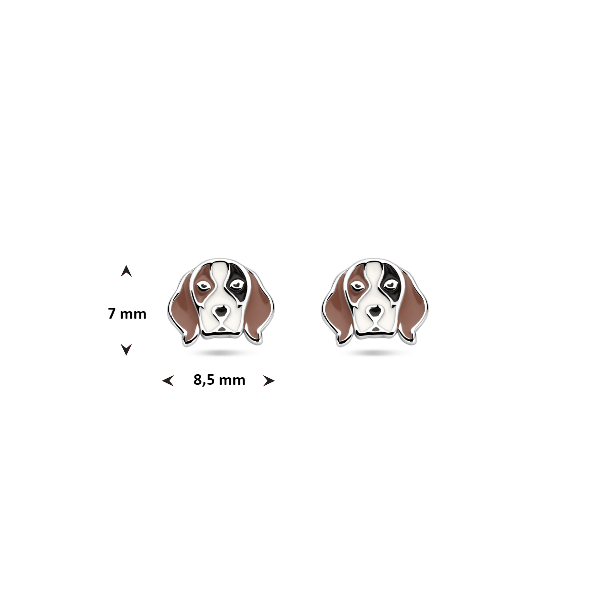 Gerhodineerd 925 zilveren oorknoppen uitgevoerd in de vorm van een hond. De oorknoppen hebben een afmeting van 7x8.5mm.