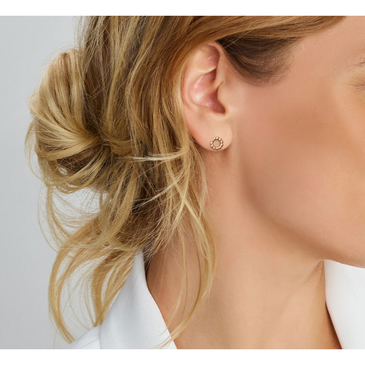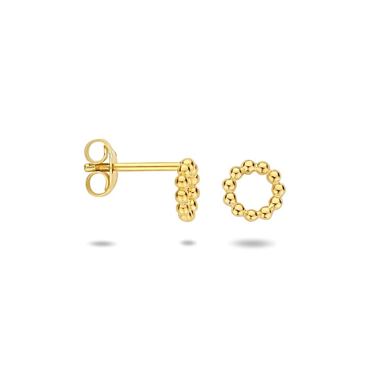 Geelgoud op 925 zilveren oorknoppen uitgevoerd met bolletjes. De oorknoppen hebben een diameter van 7mm.