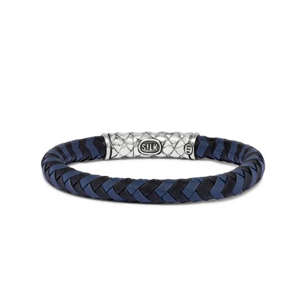 Deze stoere gevlochten leren armband in blauw met zwart gemixt leer voor zowel dames als heren. De leren armband sluit middels een mooi zilveren SILK (structuur)slot.