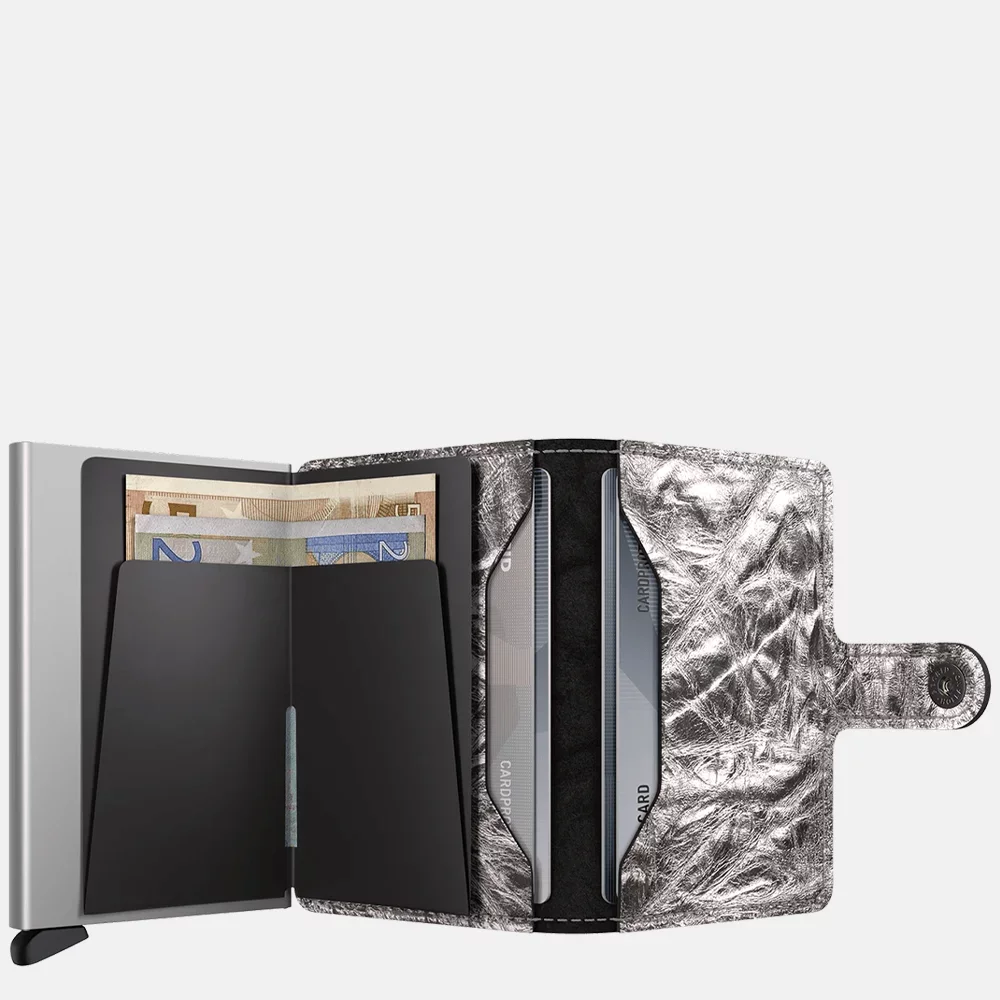 De Secrid Miniwallet Crumch - Zilver, is een stijlvol en functioneel accessoire voor veilige opslag van kaarten en brief geld. Het compacte ontwerp biedt ruimte voor meerdere kaarten terwijl je persoonlijke gegevens beschermd blijven. Draag hem eenvoudig in je broekzak of tas. Perfect voor dagelijks gebruik en biedt optimale bescherming tegen elektronisch zakkenrollen.
