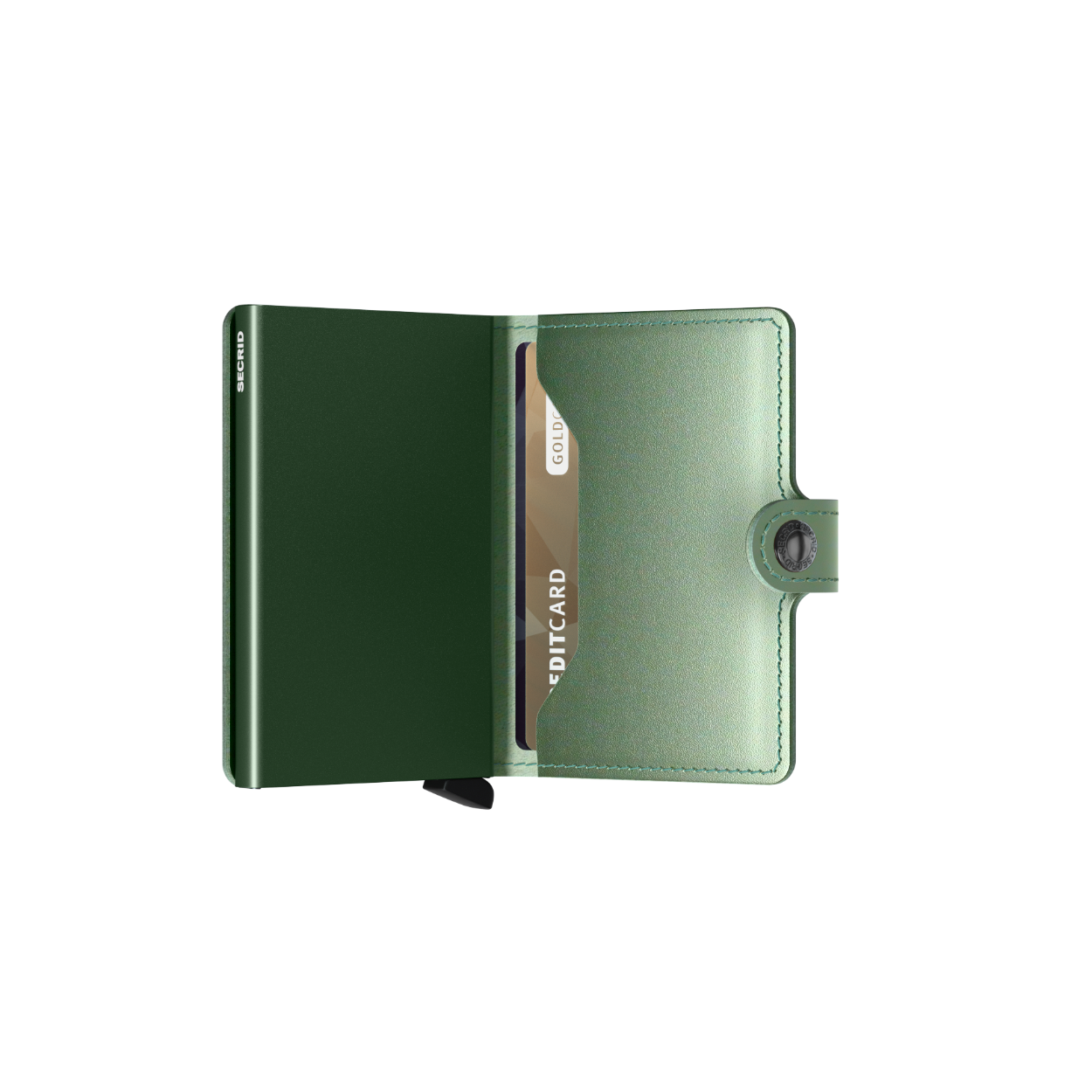 Miniwallet Metallic Green is gecorrigeerd leer, gemaakt in Nederland van Europese kalfshuiden. Bezoek de leerpagina van Secrid voor meer informatie over leereigenschappen, ons productieproces en verzorgingsinstructies.