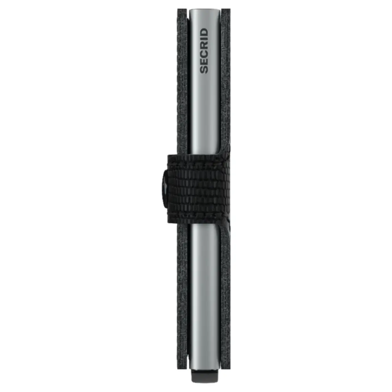 Klein van formaat en verrassend groot in opslagcapaciteit. De Miniwallet combineert het beste van twee werelden. De omhulsel bevat bankbiljetten, bonnetjes en kaarten, terwijl de aluminium Cardprotector het mogelijk maakt om kaarten met één simpele beweging uit te schuiven en ze te beschermen tegen buigen, breken en ongewenste draadloze communicatie (RFID-safe).