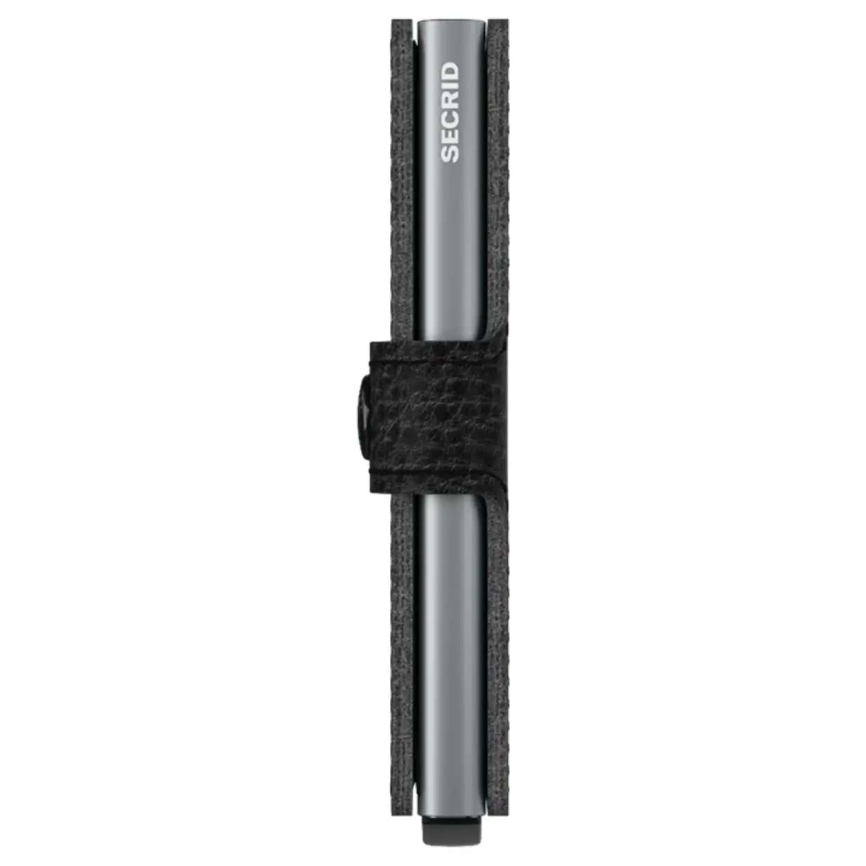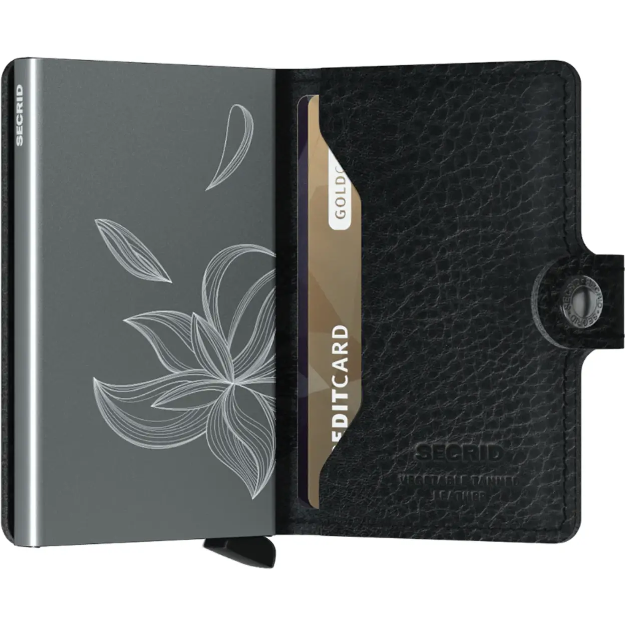 Klein van formaat en verrassend groot in opslagcapaciteit. De Miniwallet combineert het beste van twee werelden. De omhulsel bevat bankbiljetten, bonnetjes en kaarten, terwijl de aluminium Cardprotector het mogelijk maakt om kaarten met één simpele beweging uit te schuiven en ze te beschermen tegen buigen, breken en ongewenste draadloze communicatie (RFID-safe).