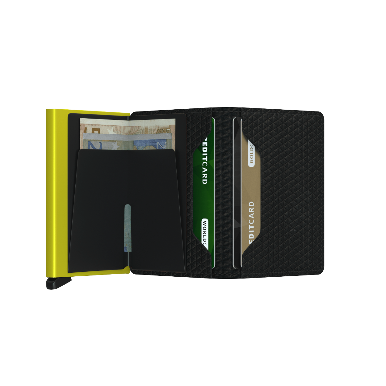 Het gepatenteerde mechanisme geeft met één simpele beweging toegang tot je kaarten: klaar voor gebruik. De aluminium behuizing beschermt kaarten tegen buigen, breken en ongewenste draadloze communicatie.