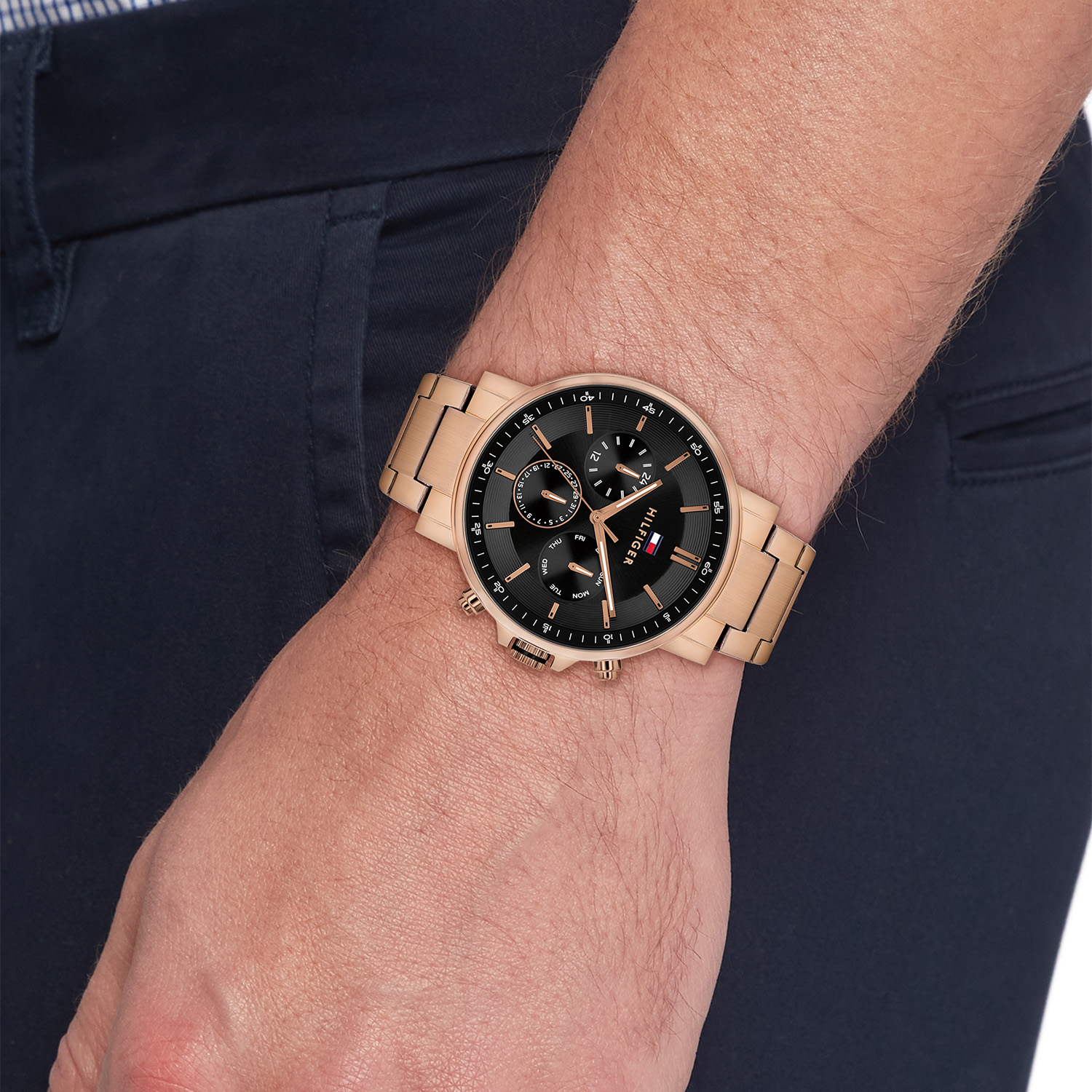 Sinds de lancering van het merk in 1985 is Tommy Hilfiger wereldwijd bekend geworden als pionier van de klassieke Amerikaanse coole stijl. Geïnspireerd door de iconische popcultuur en het Amerikaanse erfgoed. De dames en herencollectie van dit seizoen bestaan uit minimalistische silhouetten en rustieke lederen details. De herenhorlogecollectie biedt iconische uurwerken met roestvrijstalen, lederen en siliconen banden.