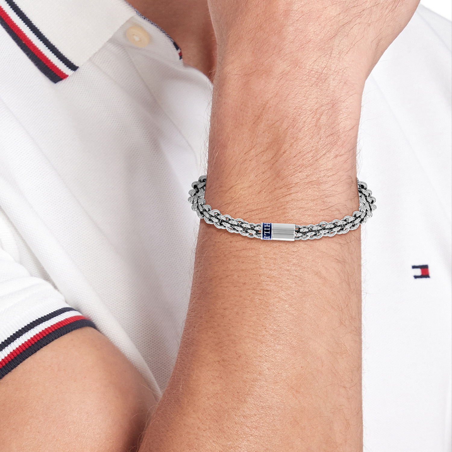 Deze armband van Tommy Hilfiger is een opvallend model. De zilverkleurige stalen armband heeft een ronde fantasie schakel en sluit met een magneetslot met blauw emaille met daarin het Tommy logo. De lengte is 19cm. Zeker leuk te combineren met de bijpassende sieraden van Tommy Hilfiger.