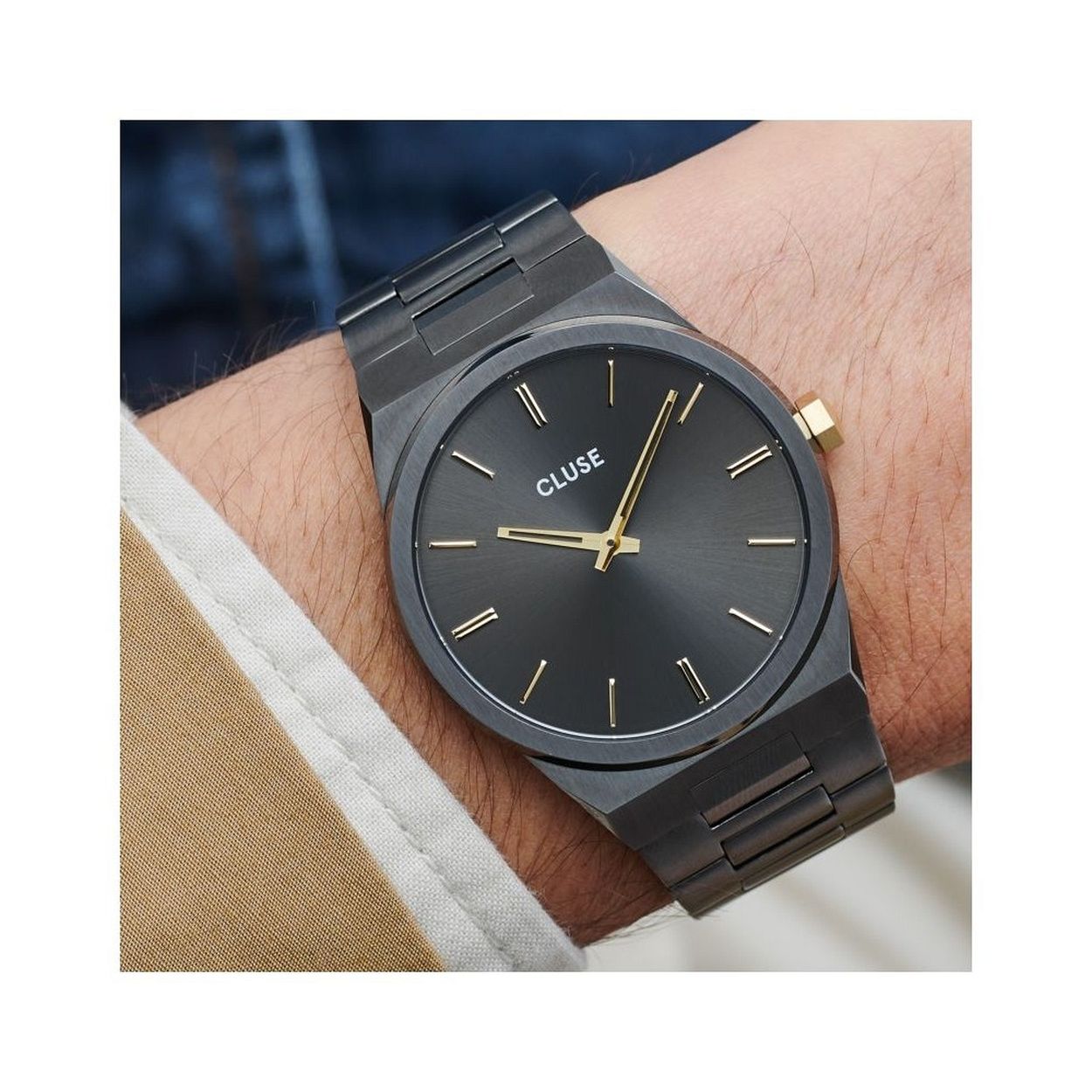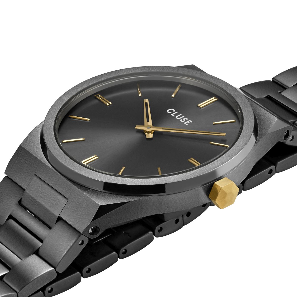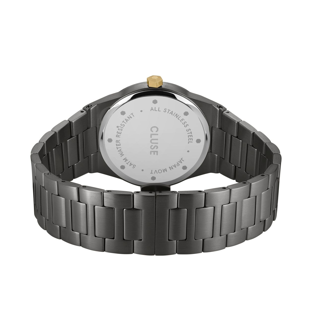 Dit Cluse horloge heeft een kleur coating op de roestvrijstalen kast met een diameter van 40mm en is voorzien van een metalen band. In de kast bevindt zich een kwaliteitsuurwerk en is afgewerkt met mineraalglas.