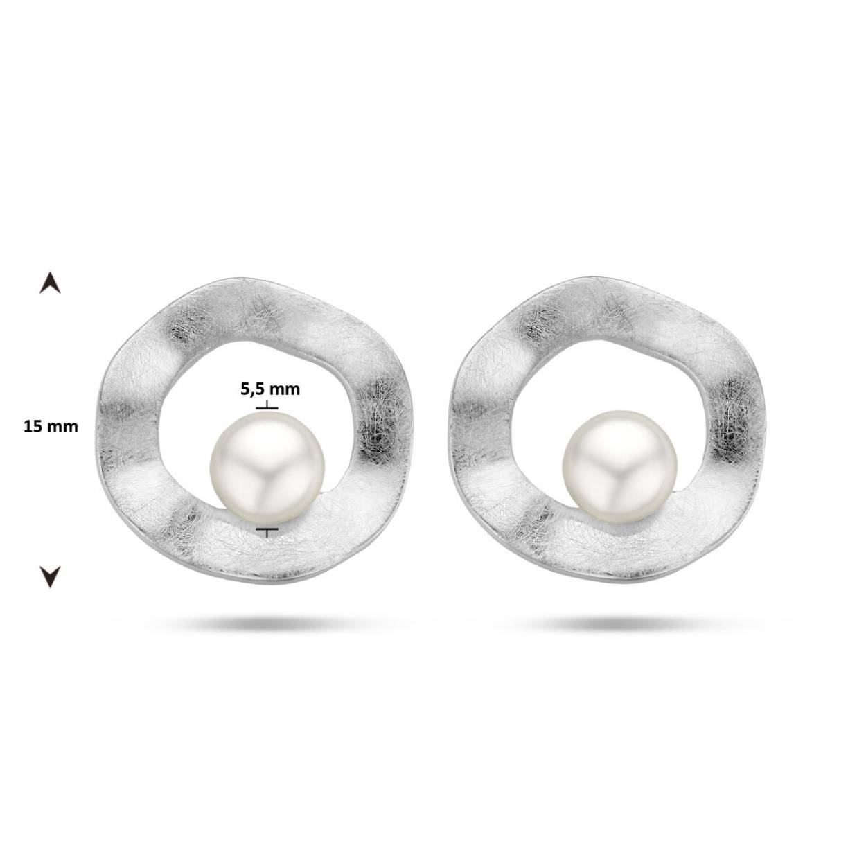 Gerhodineerd 925 zilveren oorknoppen uitgevoerd met een zoetwaterparel. De oorknoppen hebben een diameter van 15mm.