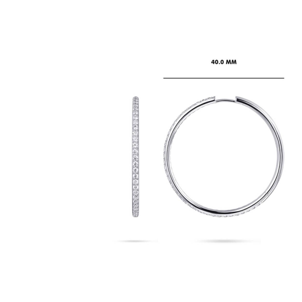 Luxe zilveren oorringen met degelijke scharniersluiting en gezet met schitterende zirkonia's, 40 x 2 mm