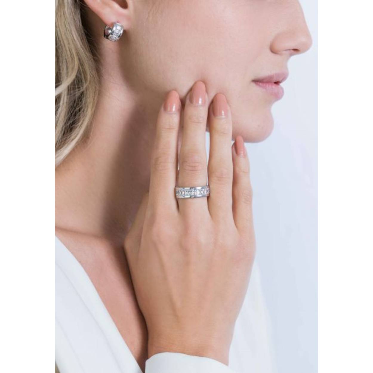 ZINZI zilveren chique ring met een brede baan die is bezet met baguette geslepen witte zirconia's. De ring is 7mm breed. Draag deze ring als statement of combineer met andere sieraden om je look compleet te maken! Vervaardigd van eerste gehalte zilver (925) en voorzien van een extra rodiumlaag voor een langdurige glans.